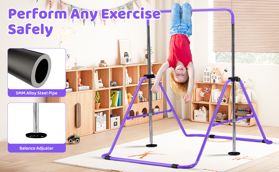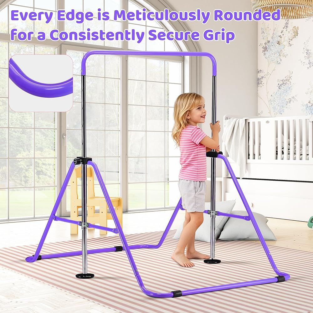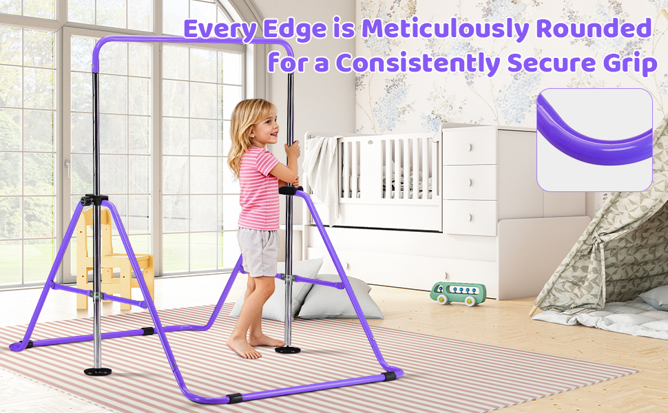 Height Adjustment Design:The horizontal bar features a five-position height adjustment. This bar is designed for children aged 3 to 7 years old, with five different height settings specifically tailored to best accommodate the varying statures of children within this age group. The adjustable height range from 35.4 inches to 51.2 inches is intended to provide an optimal exercise experience for every child.
