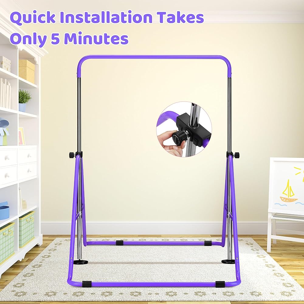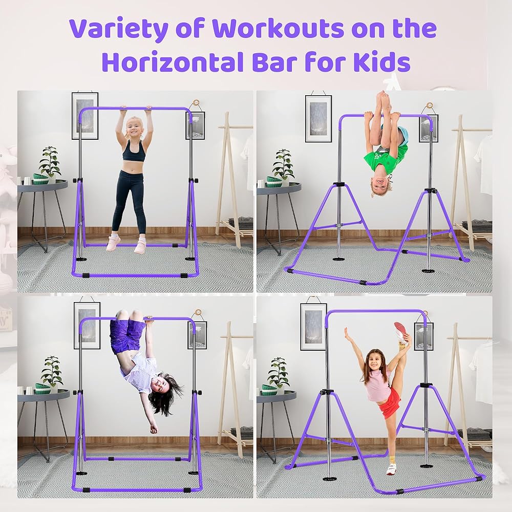 outdoor basic 2-Pack Gymnastics Bar for Kids Adjustable Height Horizontal Bar with Foldable Design Home Training Equipment for Ages 3-15 Years Old