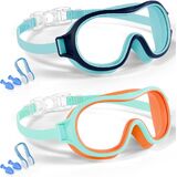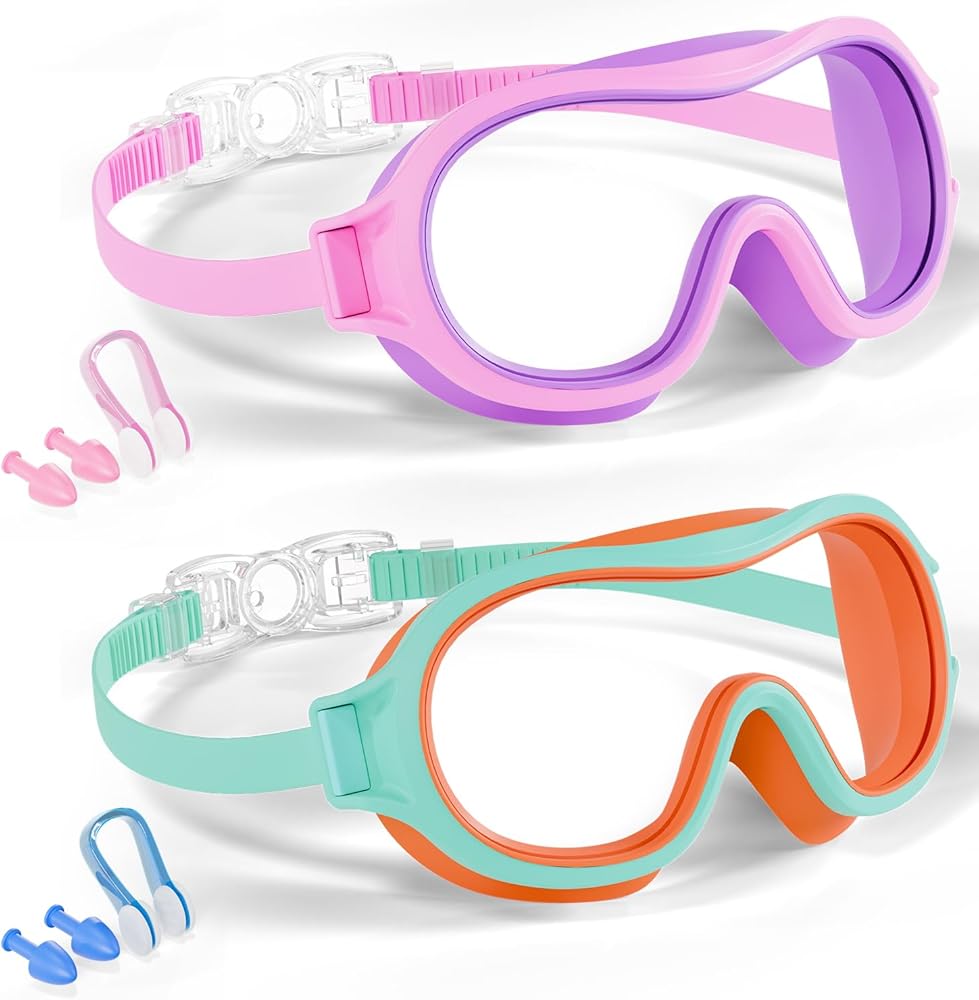 Waterproof & Safe - The wide coverage design with stronger suction provides a perfect waterproof seal to keep water out effectively. These kids goggles come with nose clips and ear plugs to prevent exposure to chlorine and other contaminants in the water.