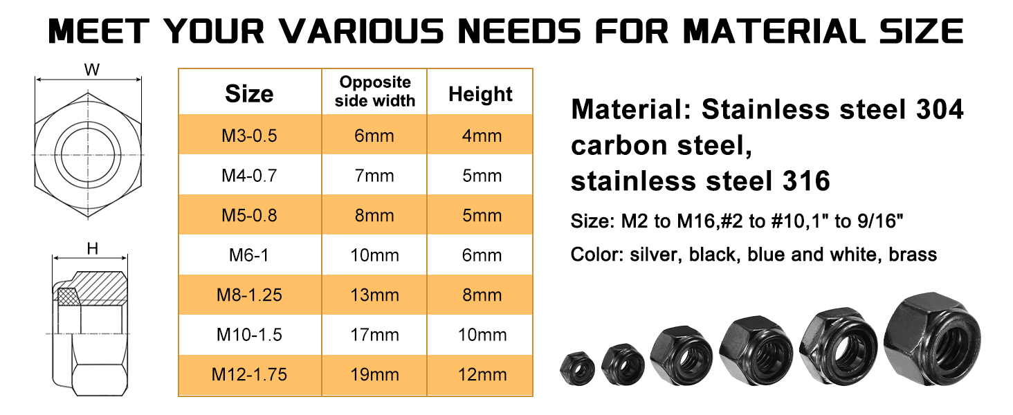 NYLON INSERT HEX LOCKNUT -The nylon lock nut enhances overall anti-loosening performance during tightening by nylon's elastic friction resistance properties, enabling the nut to withstand various high-impact scenarios.