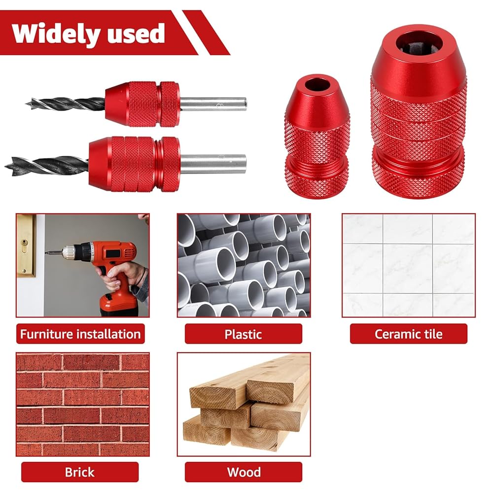 WIDE COMPATIBILITY & PRO TIP: Includes two collars fitting 5/64"-3/16" and 15/64"-7/16". PRO TIP: When using extreme small bits (like 5/64") at the limit of the range, wrap a tiny piece of painter's tape around the bit shank before clamping. This significantly enhances the friction for a more reliable grip.