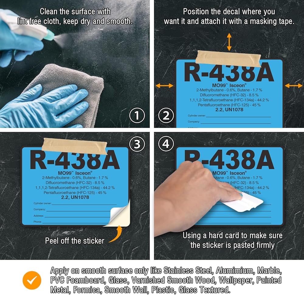 【Materials Upgraded】Refrigerant labels,Made of vinyl material with high-tack acrylic adhesive and UV-cured screen printing. Waterproof and resistant to chemicals abrasion UV water tearing and harsh temperatures
