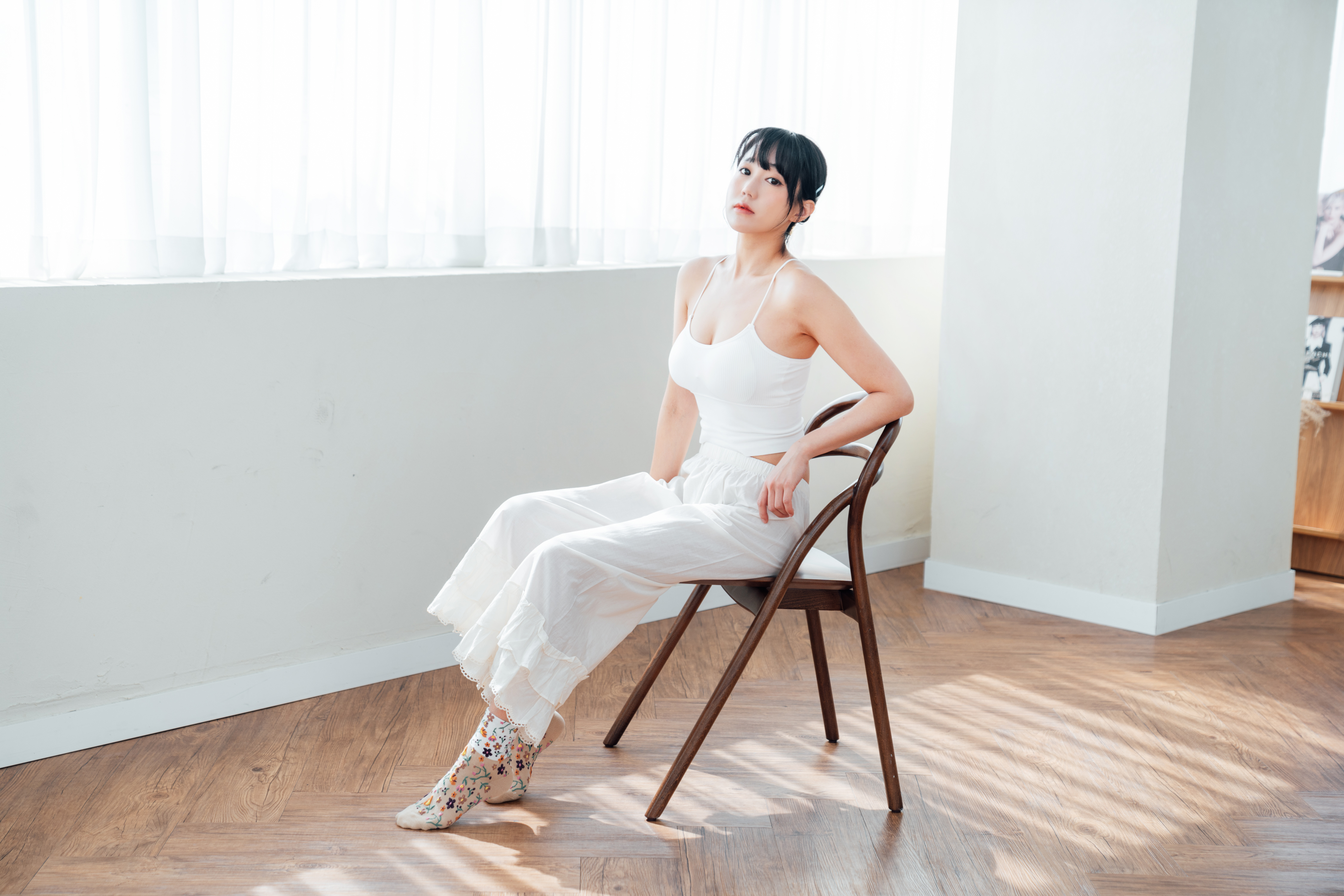 - The gentle frill of the neckline and the hem of the pants with lace like flower petals add to the feminine mood.