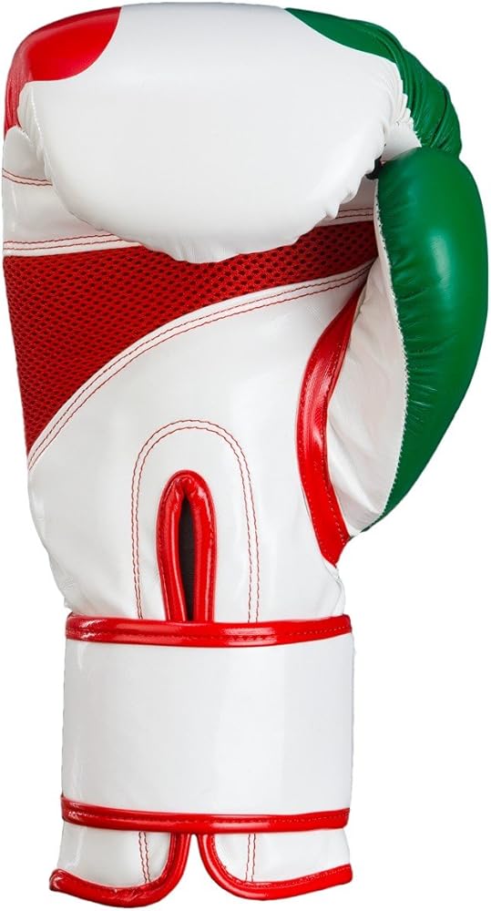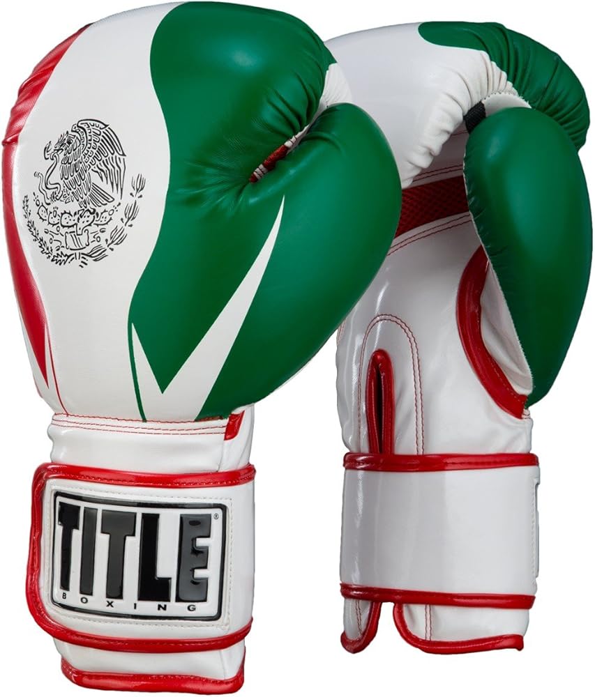 Mexico National Pride defines these dazzling and durable eagle and snake ultra-flair gloves with synthetic cover and interwoven cross-weave reinforcements and stunning inset prints for extra-long lasting wear. Superior TITLE Infused Foam technology is the rage sweeping the world in boxing glove manufacturing and performance. Almost 2" of exclusive Infused Foam over the fist and knuckles delivers a comfortable, more powerful, impact-resistant core for all the protection and execution athletes demand in their training. Additional integrated foam palm and wrist inserts for more comfortable training and wrist support. Exclusive Aerovent nylon-mesh upper palm inset helps hot air release and keep athlete cooler and drier during workouts. Moisture-wicking inside hand liner helps wick sweat and moisture while training. Wide wrap around wrist strap offers added wrist stability and coverage with hook-and-loop attachment to help keep gloves firm and secure during training. Perform with Honor! Sizes - Regular (12 oz.), Large (14 oz.)