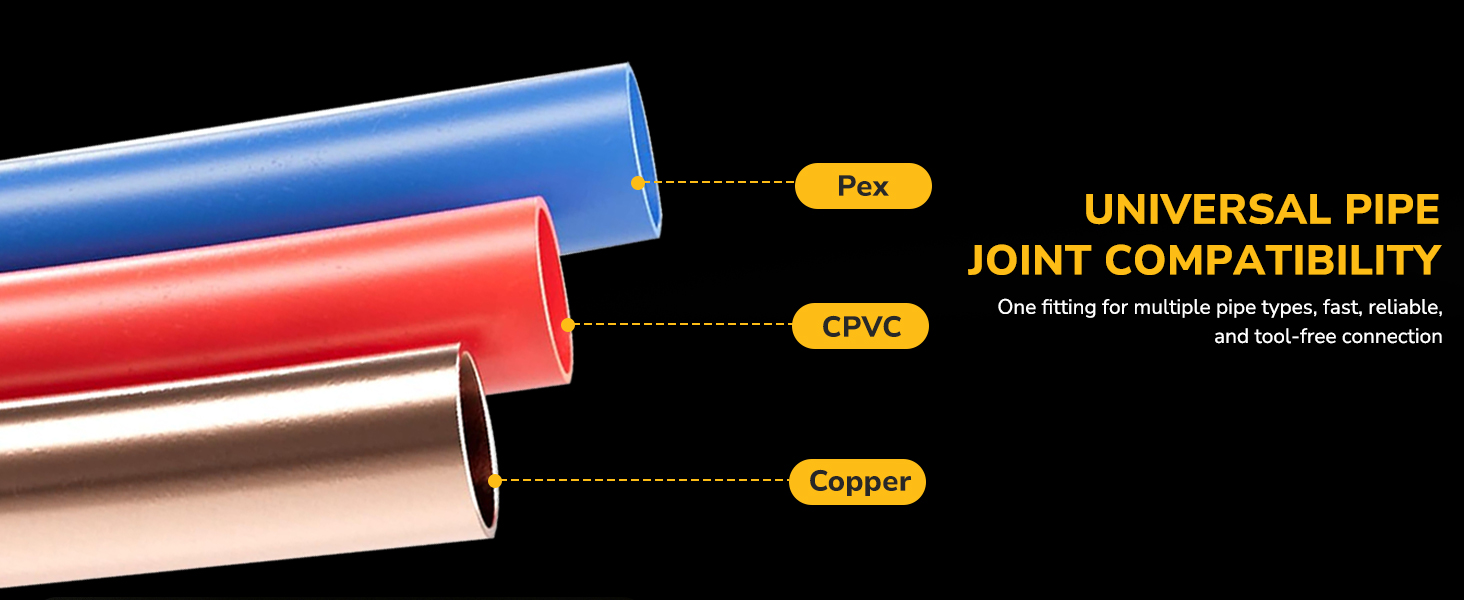 Wide Compatibility: Works with PEX, copper, and CPVC pipes for versatile use across plumbing systems. The push-to-connect design allows quick, tool-free installation, while the included disconnect clip ensures secure connections and easy removal