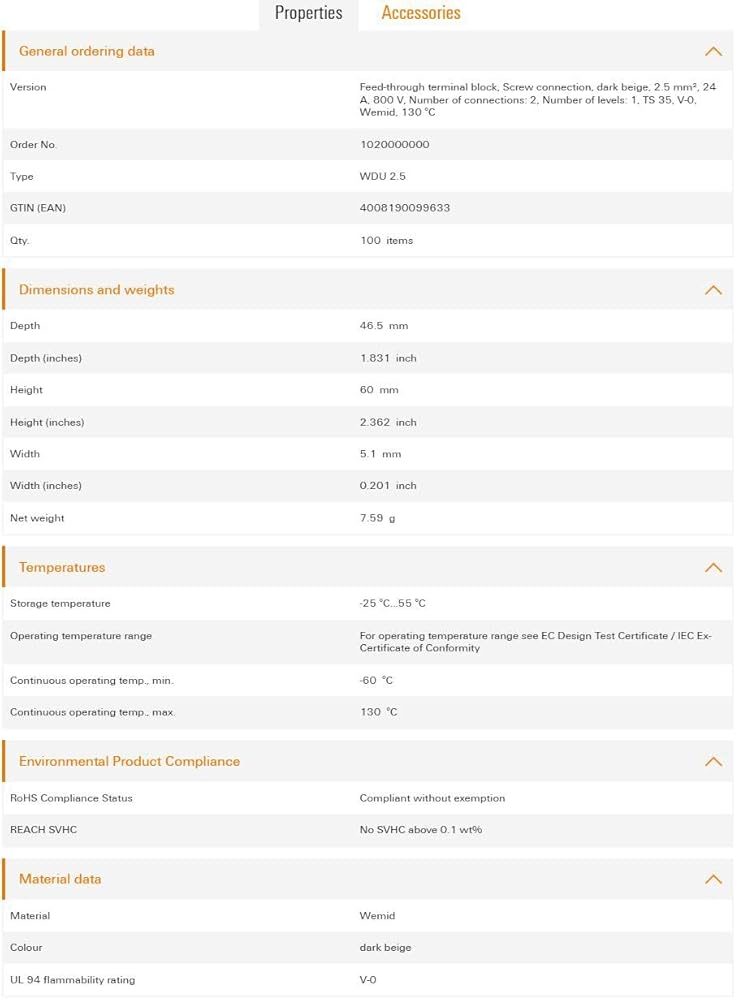 Number of connections: 2, Number of levels: 1, TS 35, V-0, Wemid, 130 °C