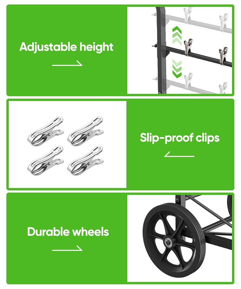 ADJUSTABLE FIT FOR 30–45 GALLON BAGS – The flexible, adjustable up and down frame arm securely accommodates standard 30 to 45 gallon trash and lawn bags (trash bag Not Included), configured 4 metal clips holding them firmly open for easy, hands-free filling. No more sagging, slipping, or torn bags—just faster, cleaner yard cleanup.