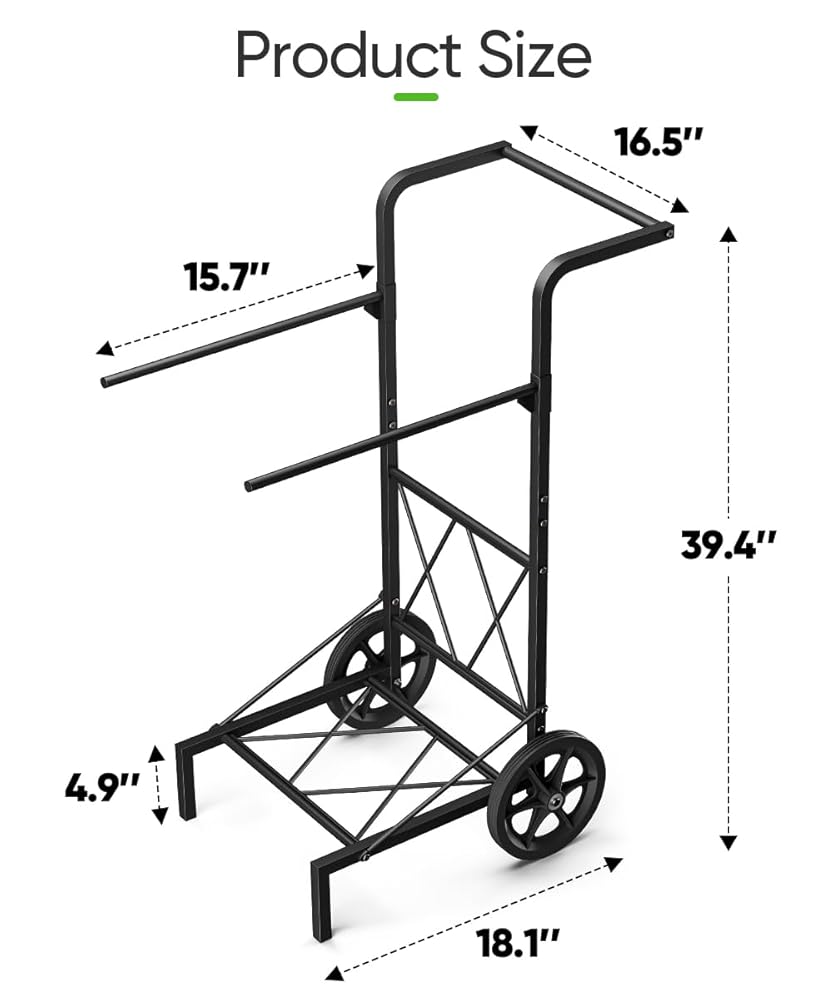 HEAVY-DUTY METAL CONSTRUCTION – Crafted from powder-coated metal steel, this heavy-duty leaf bag holder cart stand is built to withstand harsh outdoor conditions, heavy loads, and repeated seasonal use. The reinforced frame and durable wheels ensure reliable, long-lasting performance.