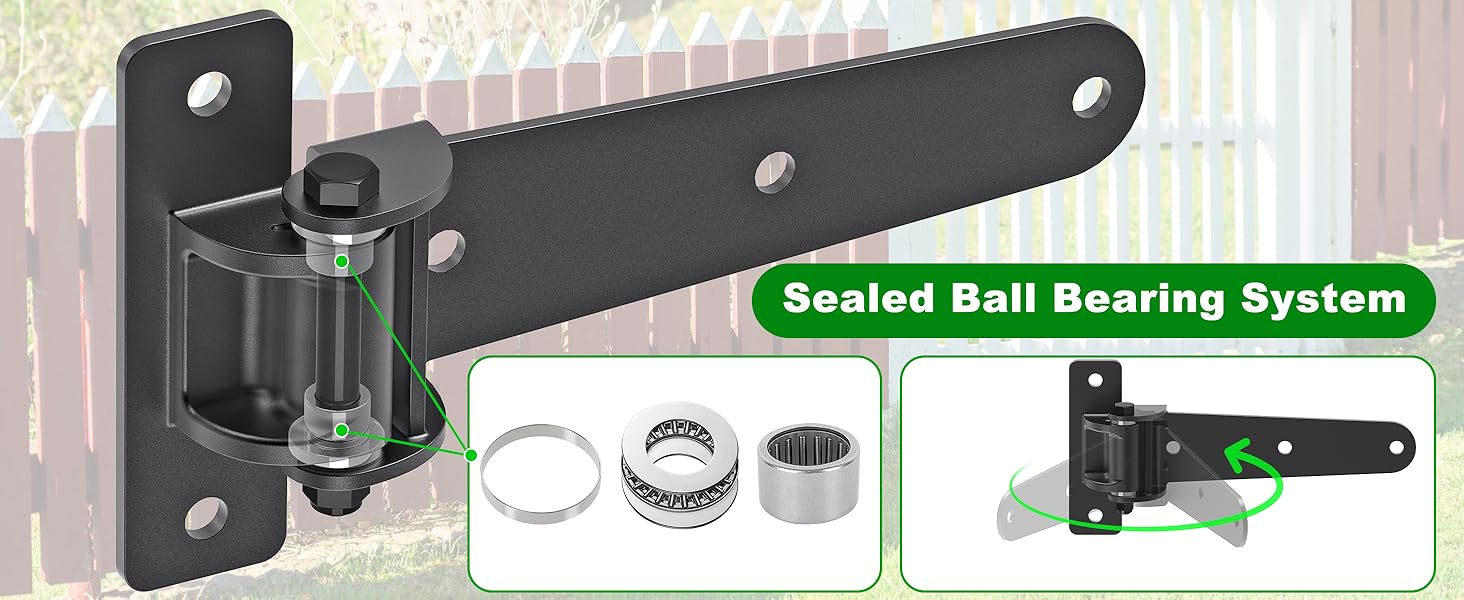 SMOOTH BALL BEARING OPERATION: Our gate hinges heavy duty wood fence feature ball bearings for a smooth, quiet, and effortless swing. The bearing mechanism reduces wear and tear, making these weld on hinges perfect for high-traffic farm entrances and frequently used shed doors.