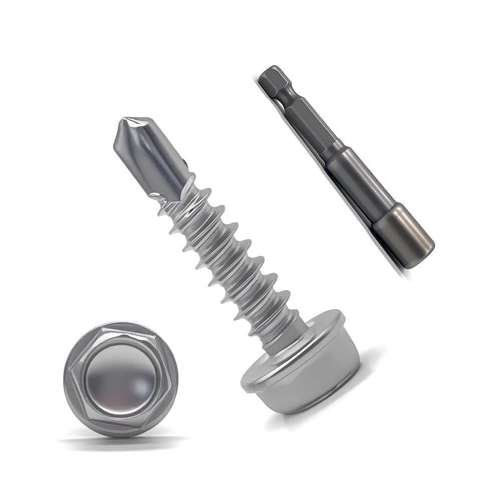 410 Stainless Steel Hex Washer Head Sheet Metal Screws – Self-Tapping, Silver Finish, with Screwdriver Bit Included This title and description refine clarity, highlight key product attributes in a logical order, and enhance readability for target users (e.g., DIY enthusiasts, industrial buyers) by emphasizing core features upfront: Core Material: Leads with "410 Stainless Steel" to prioritize durability and corrosion resistance—critical selling points for hardware. Key Design: Specifies "Hex Washer Head" (combines hexagonal drive for secure tool grip and integrated washer for even load distribution) and "Sheet Metal Screws" (clarifies application scope) to avoid ambiguity. Functional Advantage: "Self-Tapping" is highlighted to stress convenience (no pre-drilling needed), a key user-centric benefit. Visual & Practical Details: "Silver Finish" adds aesthetic clarity, while "with Screwdriver Bit Included" underscores added value (eliminates the need for separate tool purchases). For scenarios like product listings (e.g., Amazon, industrial supply sites), this phrasing aligns with search habits—users often filter by material, head type, and included accessories first—while remaining concise and informative.