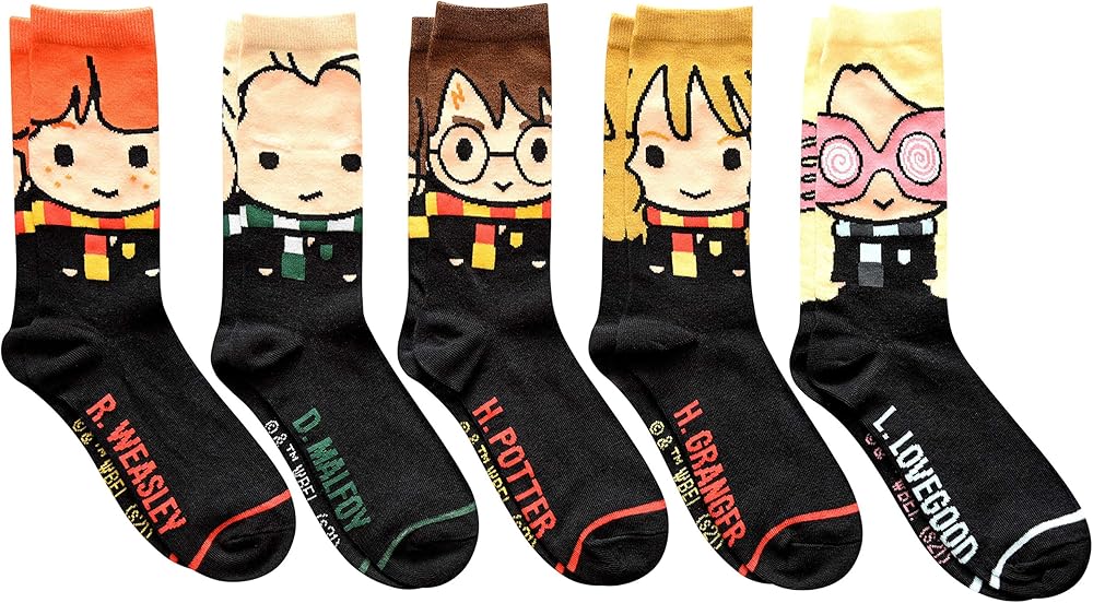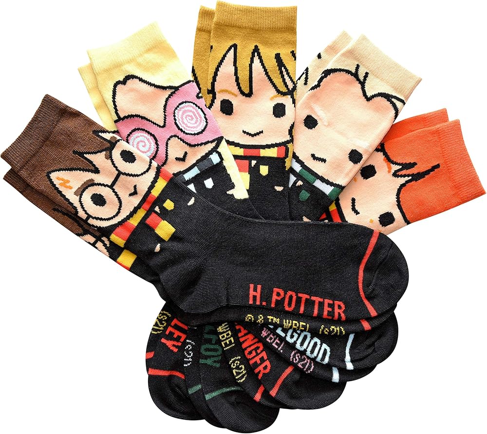 Harry Potter Cute Chibi Character Art Juniors/Ladies Crew Socks 5 Pair Pack