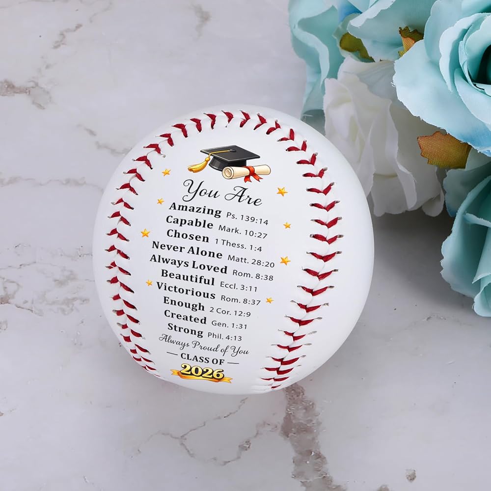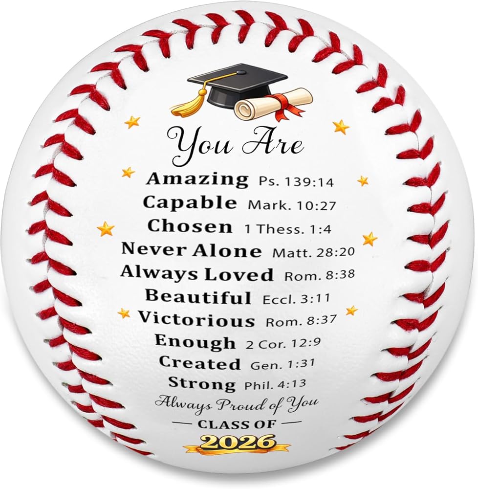 • 🎓 2026 Graduation Gifts for Him Her --- Celebrate the Class of 2026 with a gift that combines faith, inspiration! This premium baseball is beautifully engraved with powerful Bible verses which make it a perfect gift for baseball lovers and believers alike, it delivers strength and confidence for the journey ahead. Ideal graduation gift for son, daughter, grandson, granddaughter, godchild, teen, friend, sister, brother, or any graduate stepping into their next chapter with faith and courage.