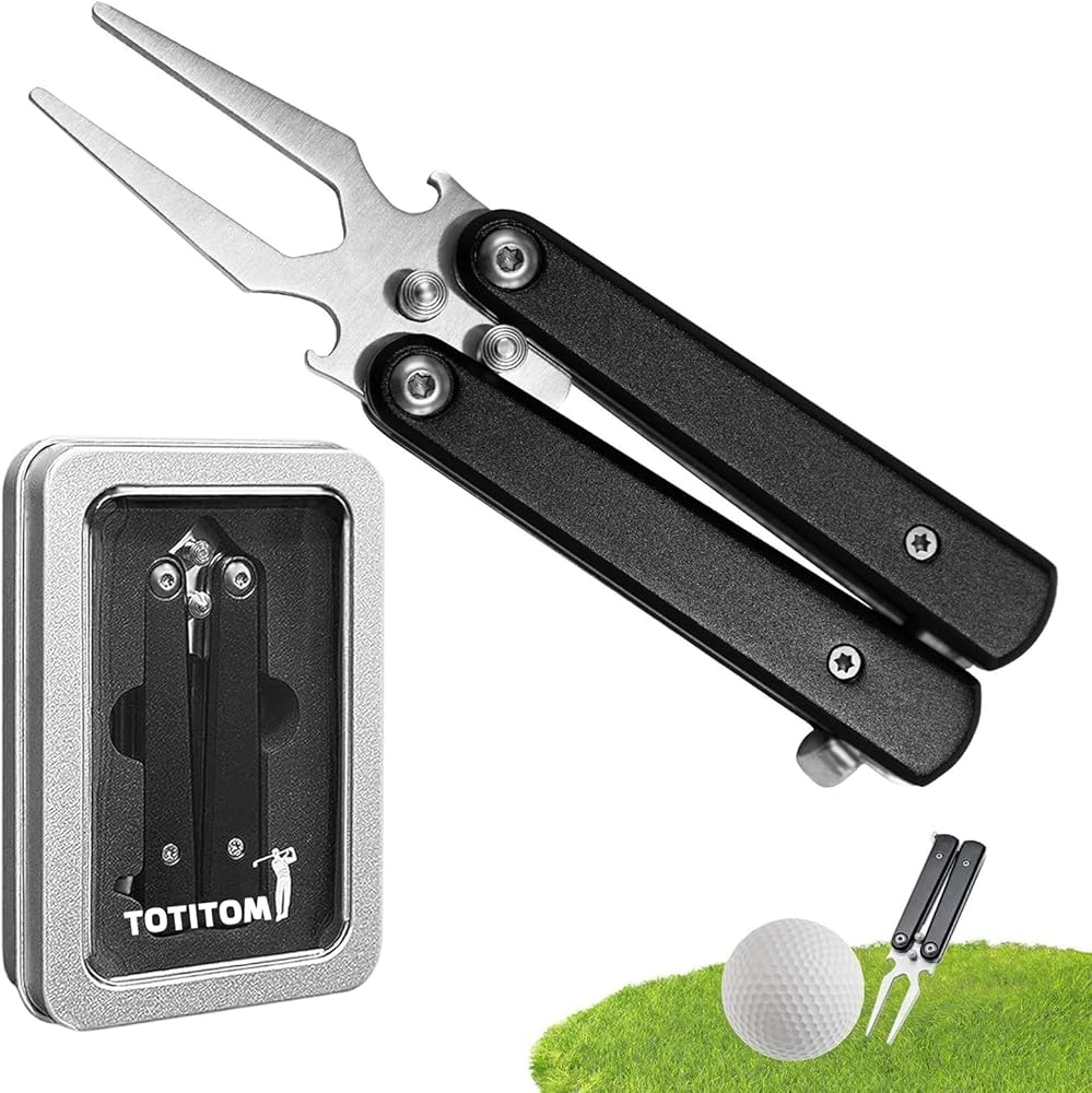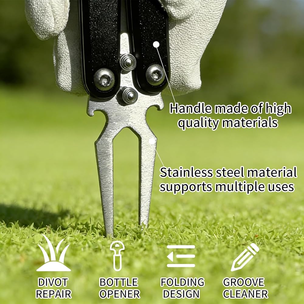 Golf Divot Repair Tool, 2025 New Metal Foldable Golf Alloy Fork, Golf Divot Tool with Bottle Opener, Golf Accessories for Men and Women Essential, Ideal Gift for Golf Enthusiasts