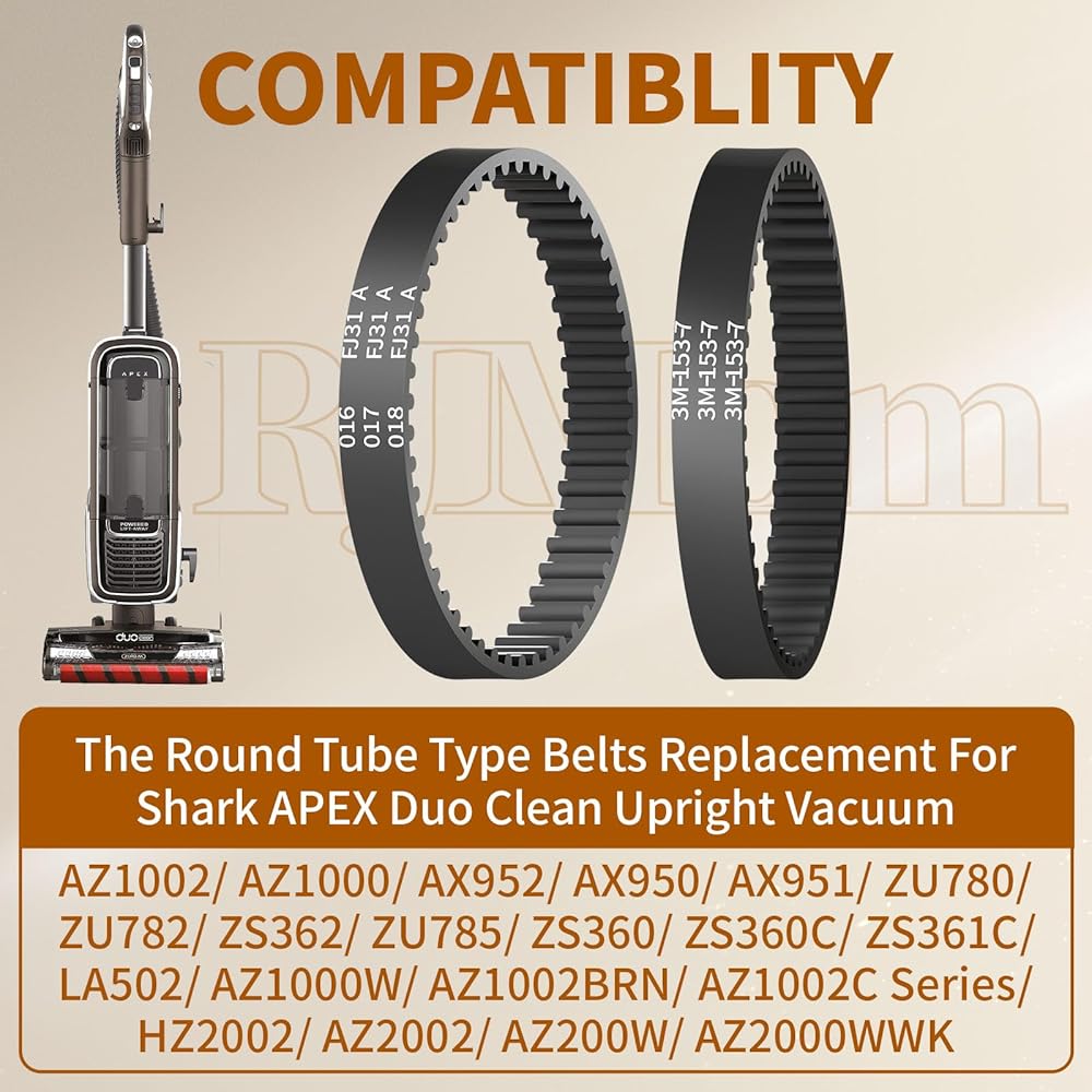 Broad Compatibility - Offers A Professional For Shark Vacuum Belt Replacement Solution, Precisely Geared Belts for Shark APEX Vertex Ultralight Series and Widely Fits Many Shark Models Including AZ1002, AZ1000, AX952, ZU782, ZS360, ZS362, AZ2002, AZ2000, AZ2000W, AZ2000WWK, HZ2002, HZ2000, LA502, LA500, LA455 and UV850 series