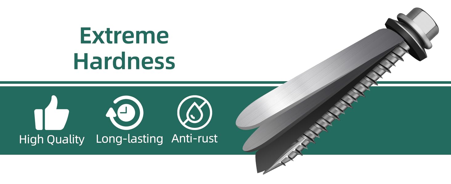 Durable Galvanized Steel - EASTPUK hex head metal roofing screws ard made from mechanical galvanized steel. Metal roof screws are tested for 1500 hours in a salt spray environment, providing increased hardness and enhanced corrosion resistance. Fast tapping self drilling screws for metal roofing.