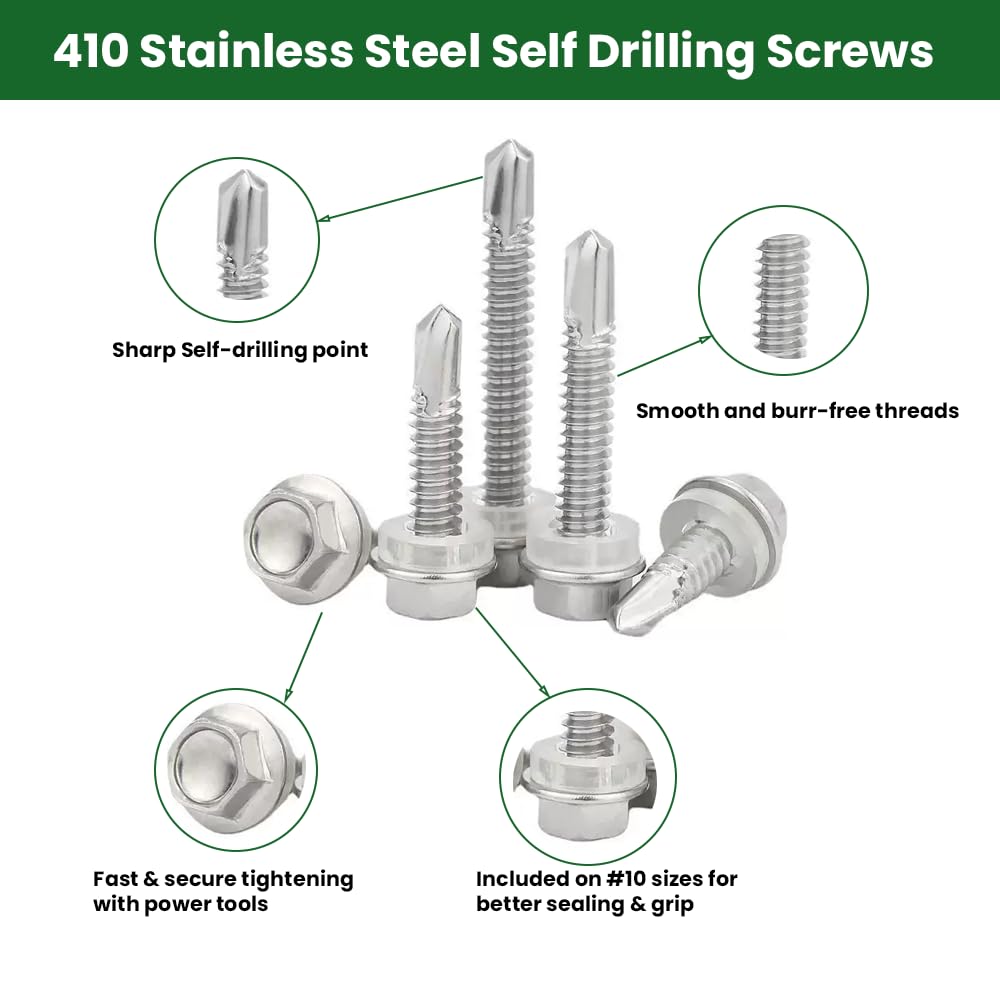 Durable 410 Stainless Steel Material: Our metal self-tapping screws are made from 410 stainless steel, offering excellent corrosion resistance, rust prevention, high strength, and resistance to deformation. Please note: 410 is a magnetic stainless steel.