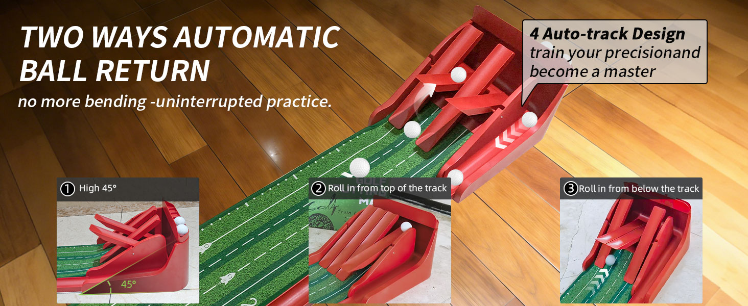 CONSISTENT GOLF PRACTICE - This golf putting green is sure to help you take your putting to the next level. Continuous automatic ball return system with adjustable ball return make you focus on maintaining a steady stroke and consistent tempo on each putt.