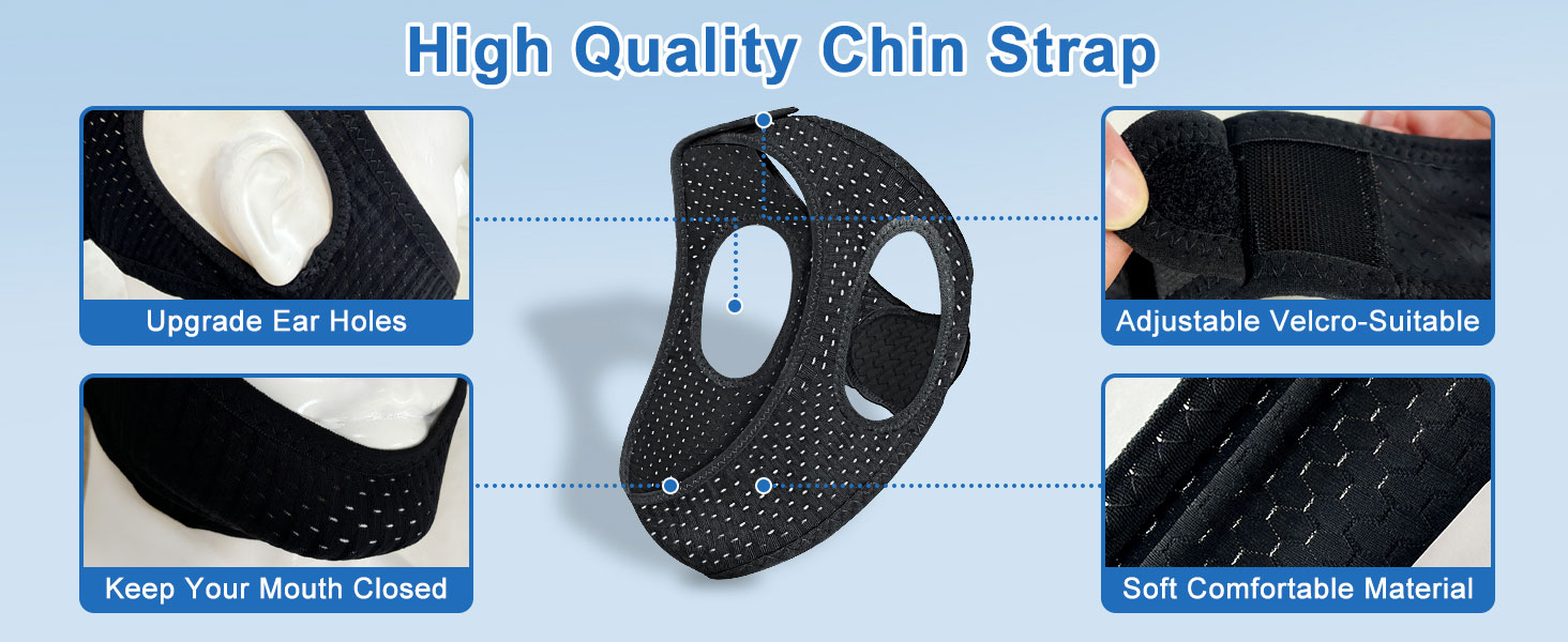 [Comfortable Fit]: The chin strap for sleeping is made of soft, elastic and enduring material with no odor. The elastic fabric easily adapts to the shape of your chin and jaw to ensure a comfortable and natural fit. Our product is compact and lightweight, easy to carry. Whether you are at home, traveling, in the office or other places, you can always use our products to get quality sleep