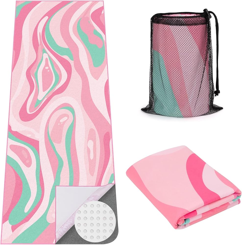 Absorbent & Breathable Microfiber Material: A soft microfiber texture on the top features breathable and towels easily keeps the mat dry and protected, suitable for hot yoga, pilates and other sweaty workout
