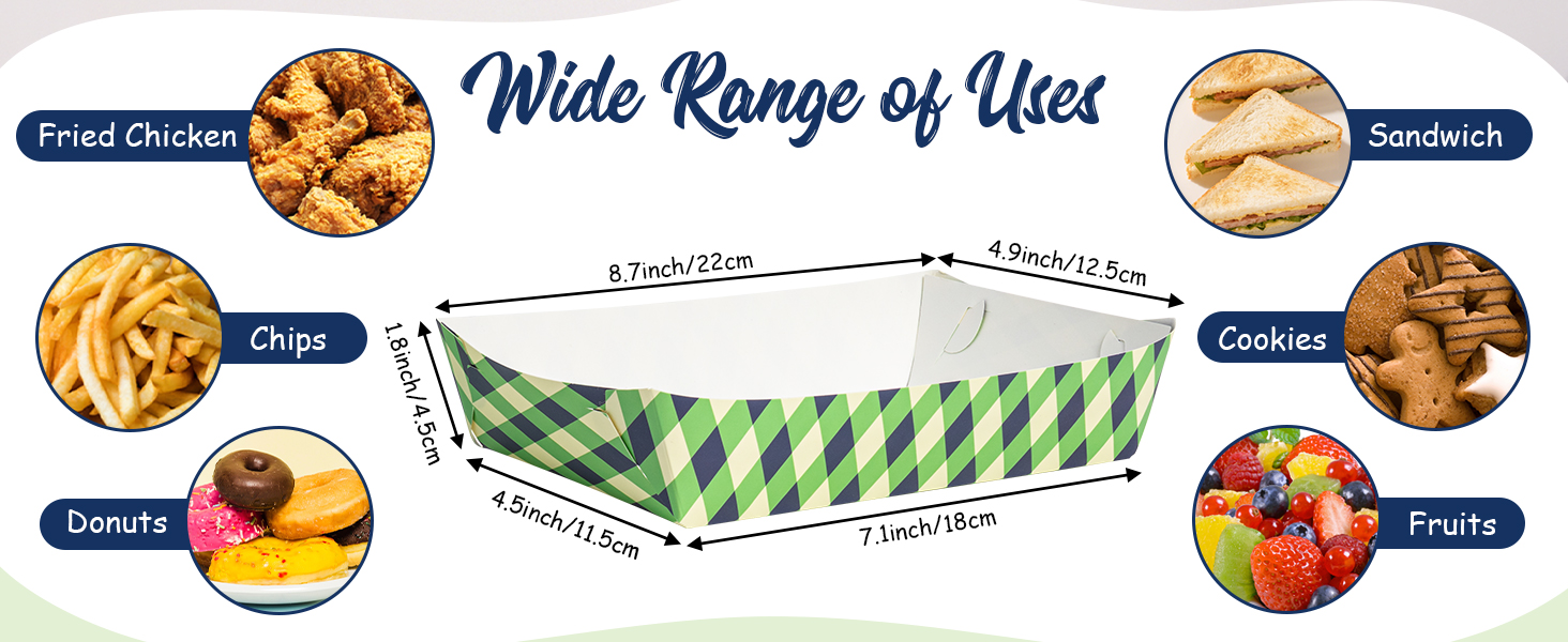 Premium Quality & Disposable Convenience: Our Derby gingham food trays are made of sturdy, even with greasy or wet foods like nachos and fried chicken. Best of all, they are disposable, simply toss them after your party, no washing required, so you can spend more time celebrating and less time cleaning up
