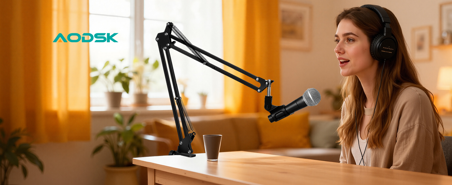 AODSK Microphone Arm Stand Ideal for recording studios, live streaming, and stage use Reinforced base Includes 3/8“ to 5/8" adapter Compatible with most microphones