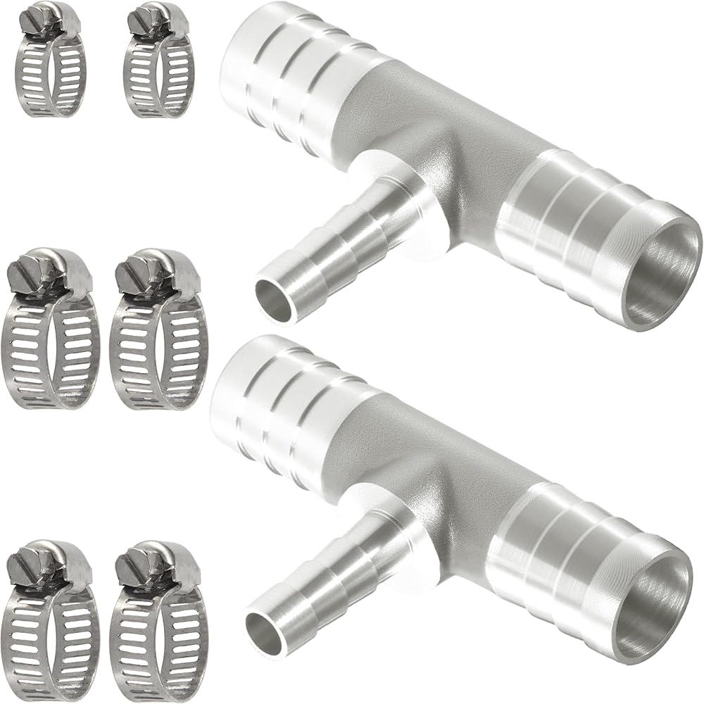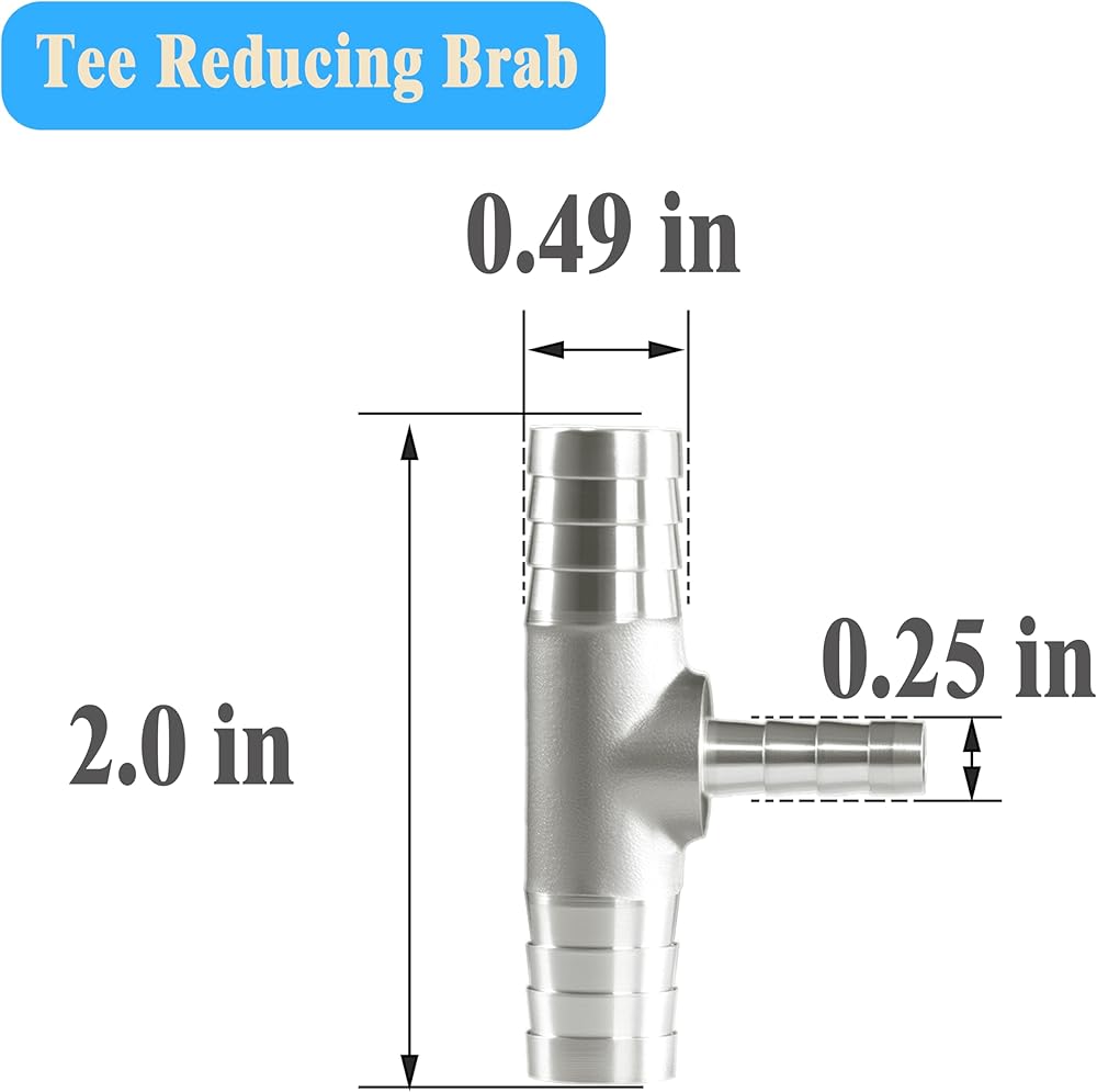 Fits hoses with 1/2" ID on the main line and 1/4" ID on the branch. Deep, sharp barbs ensure a secure hold when used with standard hose clamps (recommended for best sealing).