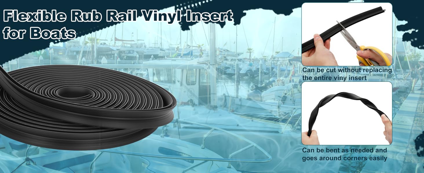 Easy to Cut: This black rub rail for boats can be cut to match the dimensions of the vessel's edge, just remove the damaged rub rail insert without replacing the entire vinyl insert. The flexible vinyl insert bends easily and goes around corners easily