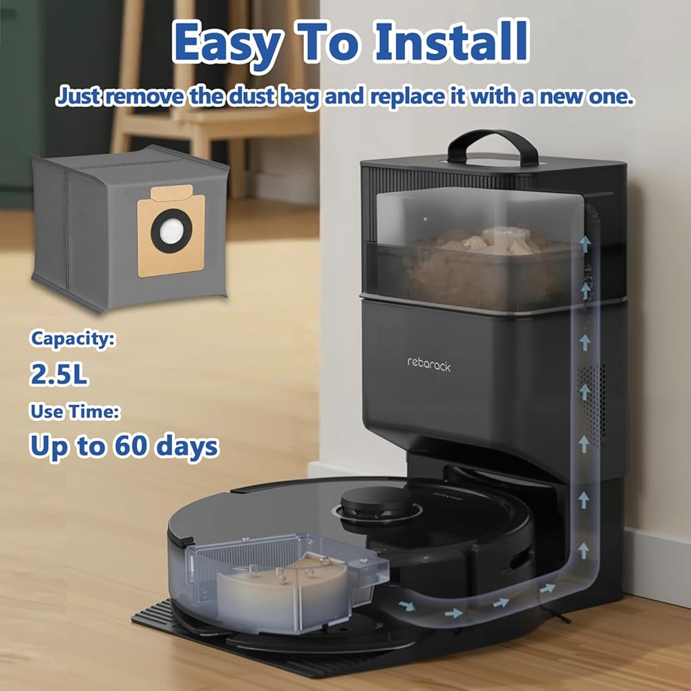 【Easy to Install】 Both mop pads and dust bags feature easy-click installation–no tools required! Simply remove the used item and snap in the fresh one. If you encounter any problems about your robot vacuum accessories, please feel free to contact us at any time.
