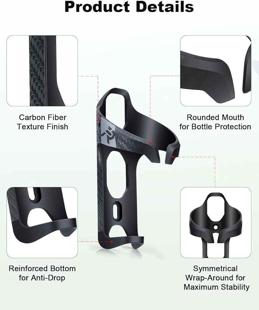 Lightweight Design:This water bottle cage weighs only 30 grams, adding zero burden to your ride. The premium carbon fiber textured surface effectively prevents frame scratches and seamlessly matches all types of bicycles, road bikes, mountain bikes, and e-bikes.