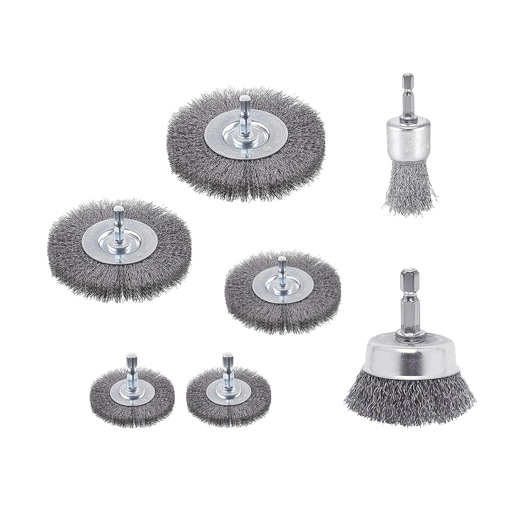 7 Pack Carbon Steel Wire Wheel and Pen Brush Set Wire Brush for Drill Pen Brush Set with 1/4-Inch Hex Shank for Cleaning Rust Corrosion & Scrub Surfaces