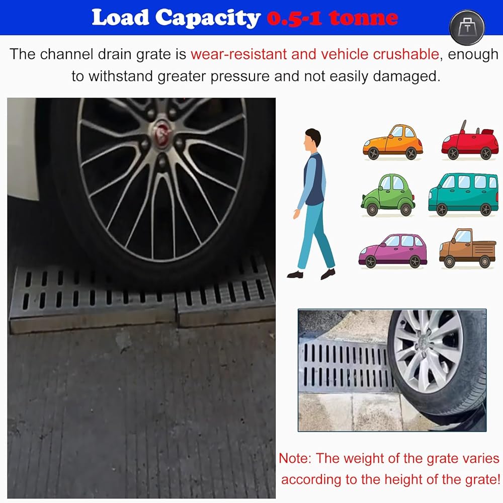 • Sewer Cover Grates: Designed for Simple Installation, our Drain Cover is perfect for enhancing your outdoor spaces. Once your drainage ditch is fully cured, easily place the Sewer Cover Grate directly on top. For versatility, it can be cut to fit your specific needs, ensuring a secure and functional fit. Ideal for various drainage applications, it combines practicality with quality.