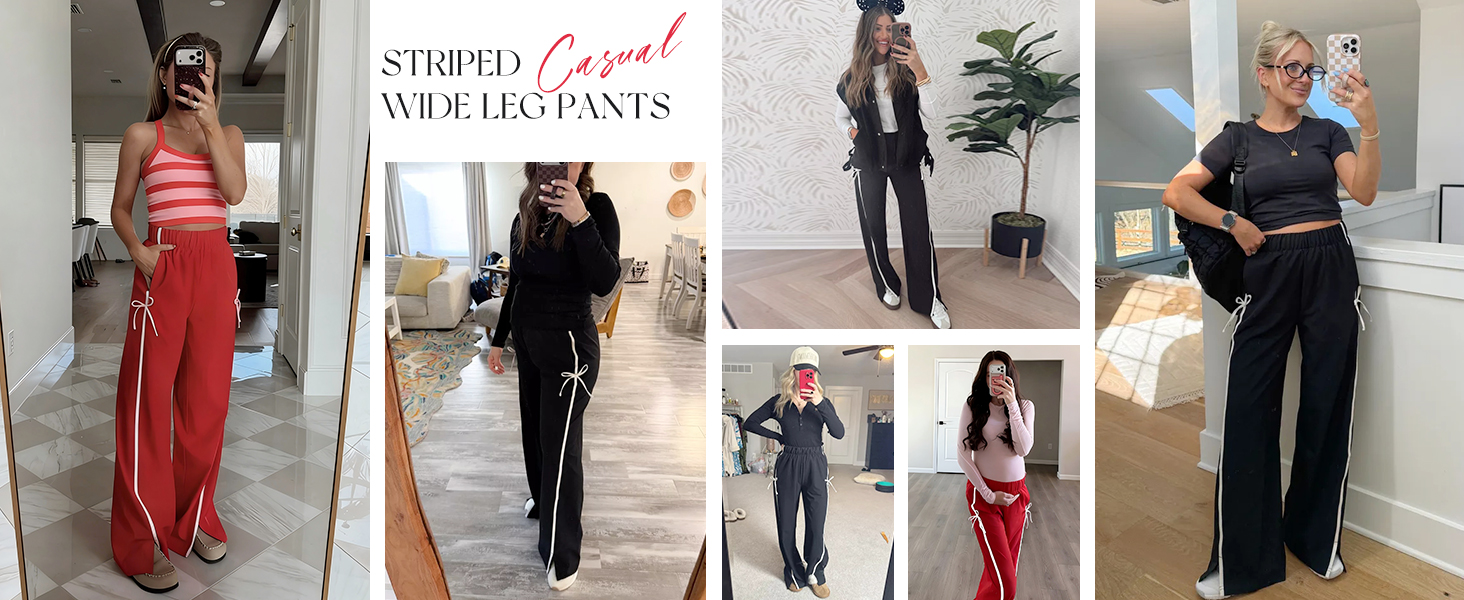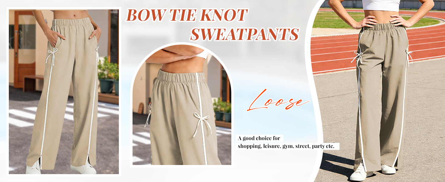 Match: The striped wide leg pants adapt seamlessly to your lifestyle. Easy to pair with crop tops, t-shirts, tank tops, hoodies, sneakers and so on, wearing the y2k bow tie knot sweatpants makes you a very eye-catching presence.