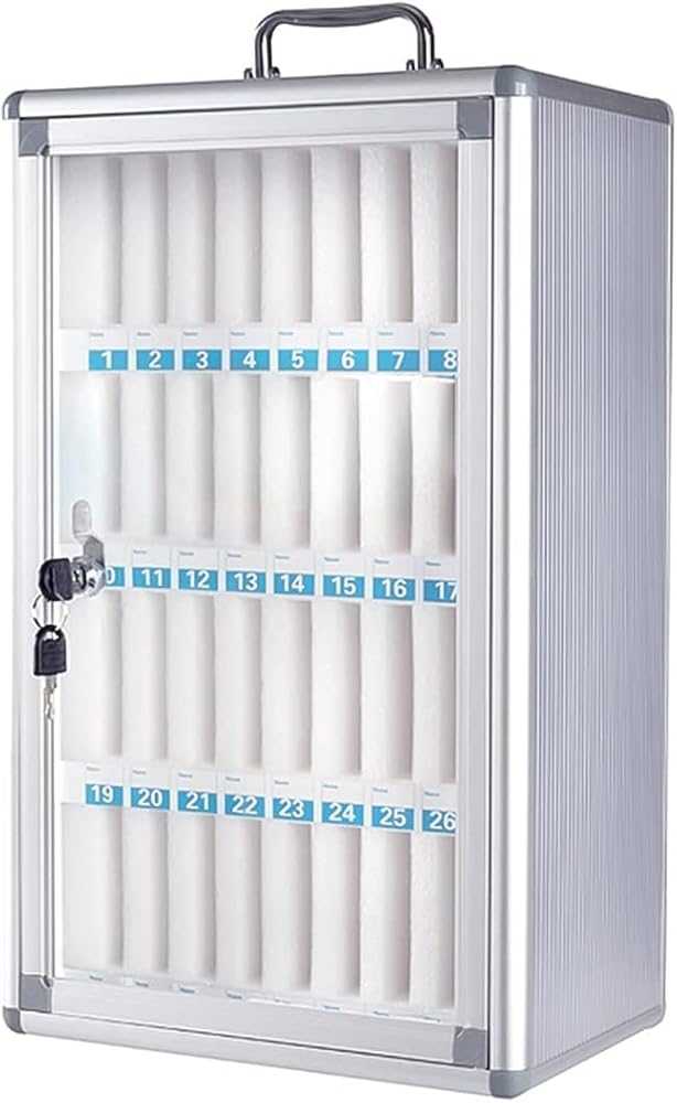 • ?? 【With Lock Design】This phone lock comes with a security lock and keys to keep phones safe. The transparent door and the marked number make it easy to find the corresponding phone, saving time and effort.