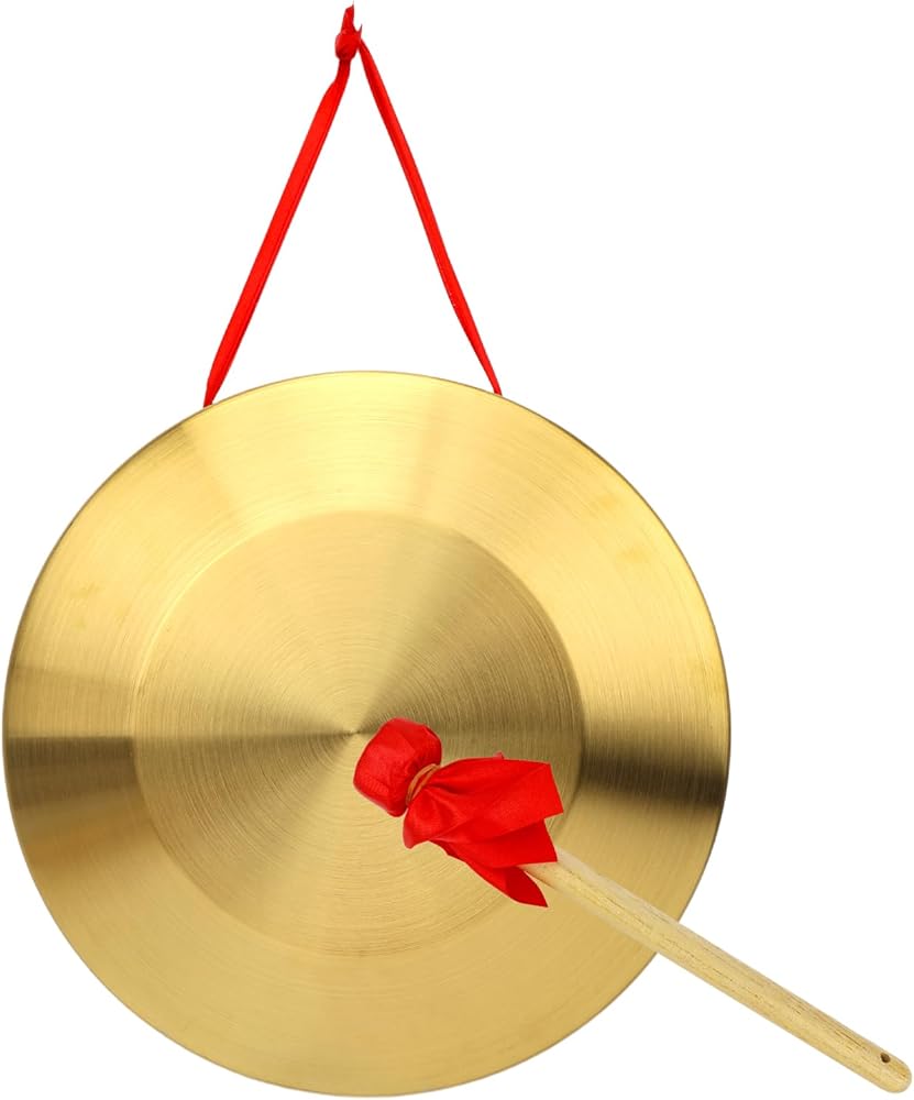 Size: This set includes a 12.6-inch copper alloy gong, a wooden hammer, and a red hanging ribbon.br>