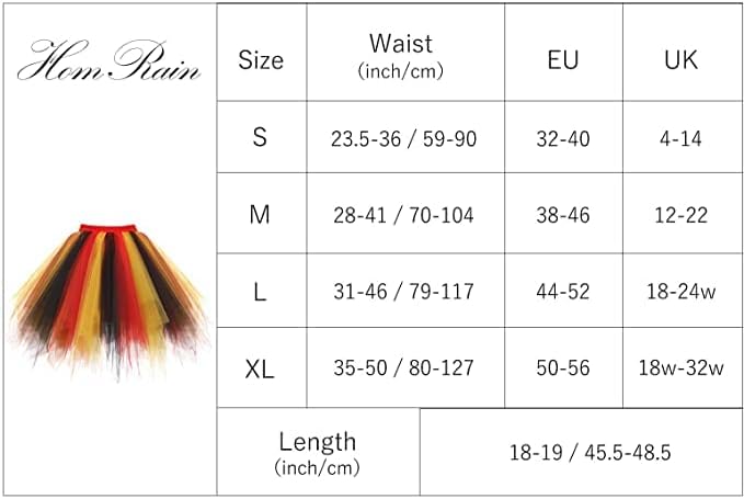 Features: Multi-layer tulle make our skirt look much more pop and flared than normal tutu skirt. This tutu will made you in addition to being eye catching and focus in any events. Layered dress up tutu is in elegant and princess style. Colorful will make you pretty and lively. It also can be matched with the different costume or be worn with leggings as skirts.