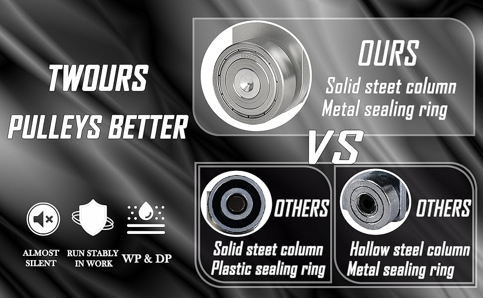 [ POWERFUL MATERIALS and BEARING DESIGN ] : Our Two Bearing Trolley Assembly is crafted from high-quality solid steel and galvanized steel plates, providing outstanding hardness, superior rust and corrosion resistance, and remarkable load-bearing strength for reliable performance. The pulley system incorporates bearings for smooth, quiet operation, ensuring optimal functionality throughout its use.