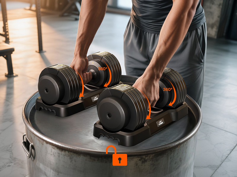 【1-S Fast Weight Change】One-handed operation design, convenient for fast changing dumbbells' weight during training. Just turn the handle with one hand, FLYBIRD dumbbells can save you time changing different weights with both hands, enjoy the faster adjustment, and gain better training efficiency