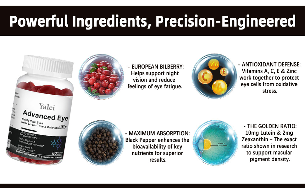 【Go Beyond Basic Support with Our Full-Spectrum Antioxidant Matrix】:Don't just protect—actively nourish. We supercharge our formula with a robust blend of Vitamins A, C, and E, plus 5mg of Zinc. This antioxidant dream team fights oxidative stress caused by environmental factors, providing comprehensive support for your eye's delicate tissues and long-term cellular health. It's the 360-degree defense your eyes need in a modern world.*