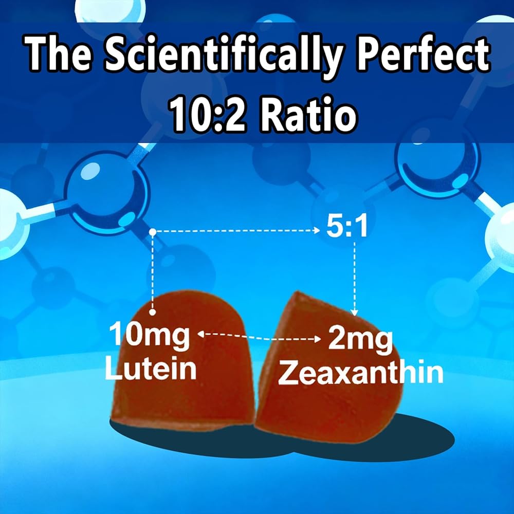 【Unlock the Scientifically Perfect 10:2 Ratio for Ultimate Blue Light Defense】:Your eyes deserve the gold standard in protection. That's why we've precisely formulated each serving with 10mg of Lutein and 2mg of Zeaxanthin—the exact 5:1 ratio found in the most advanced clinical studies and naturally present in your eye's macula. This powerful duo acts as your body's own internal sunglasses, working synergistically to filter harmful blue light from screens and sun, and shielding your precious central vision from daily strain.*