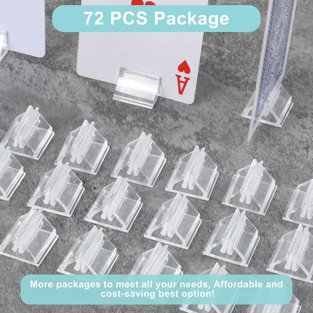 72 Pcs Table Number Holders, Clear Acrylic Place Card Holders, Small Card Stand for Display, Table Cards Holder Picture Clip for Price Board Photo Memo Menus Label