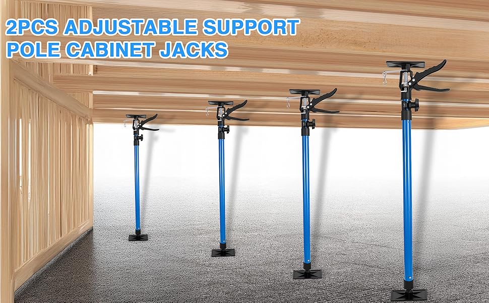 【Heavy-Duty & Stable】Cabinet jacks are made of high-strength steel poles and thickened PP non-slip pads. They can bear a load of up to 154 pounds and are strong and long-lasting without bending or shaking.
