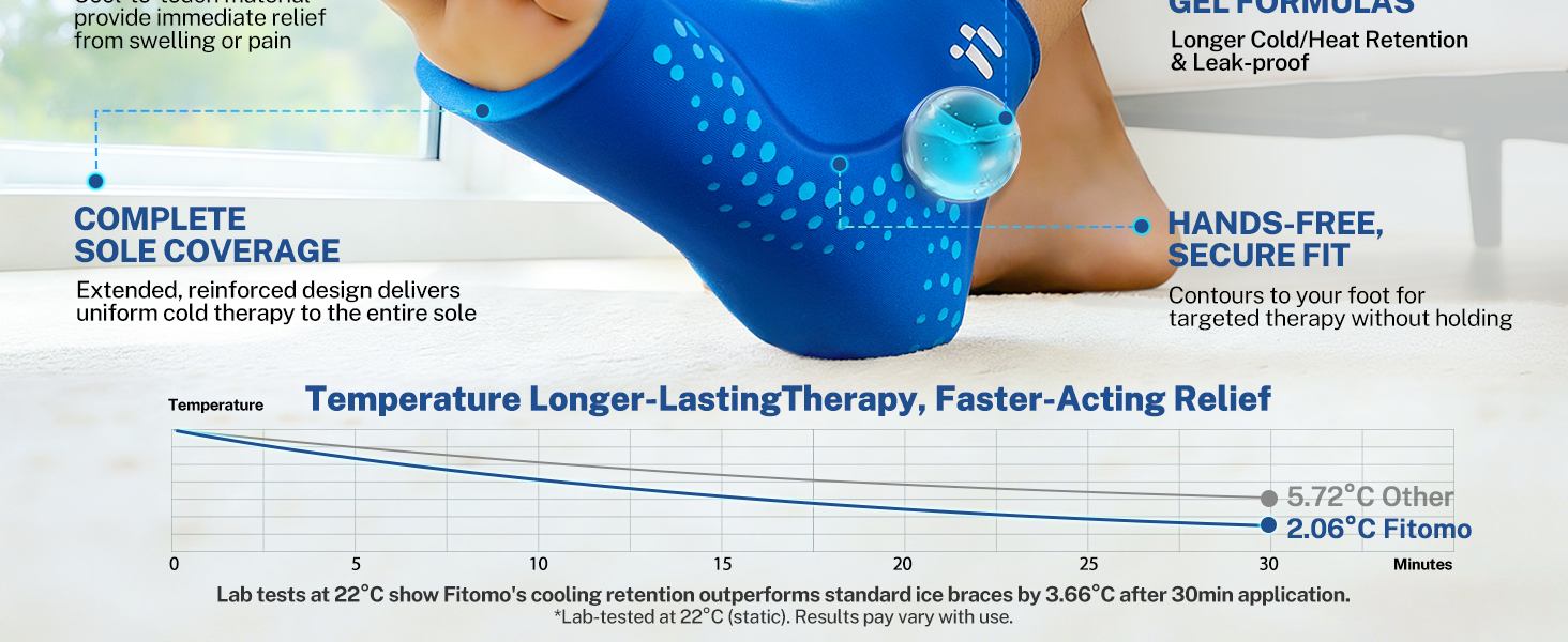 VERSATILE DUAL COLD & HEAT THERAPY: Reduce inflammation or relax muscles. Fitomo reusable gel ice pack wrap seamlessly switches between therapies for complete pain management in any recovery stage. Fits both left and right foot