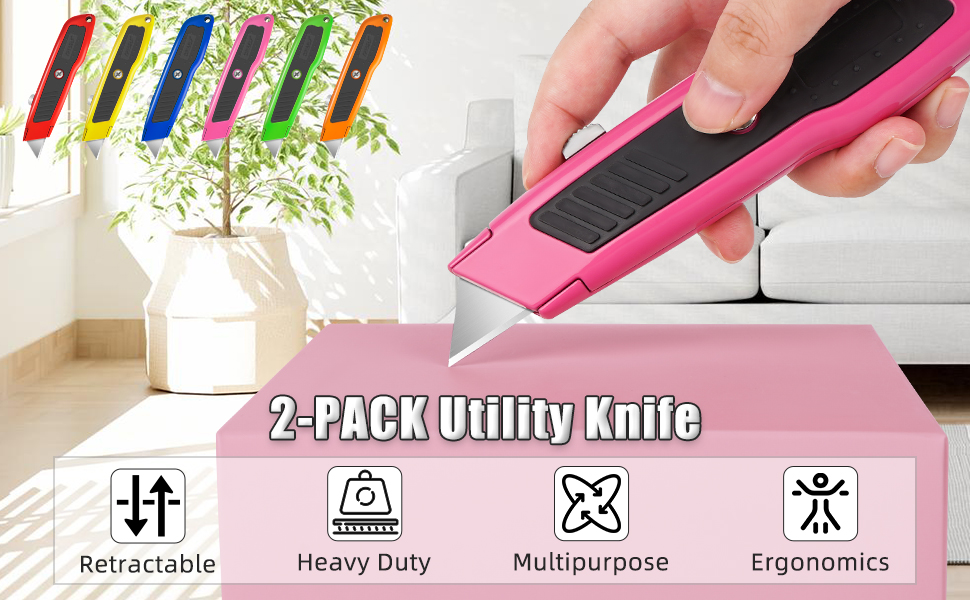 【Wide Application】Our box cutters are suitable for cutting a variety of materials, whether it is paper, cardboard, leather, woven fabrics, wool fabrics, plastic, PVC or foam, this box cutter knife can cut quickly. The box knife retractable is small and easy to carry, and it is also a good choice for outdoor travel.
