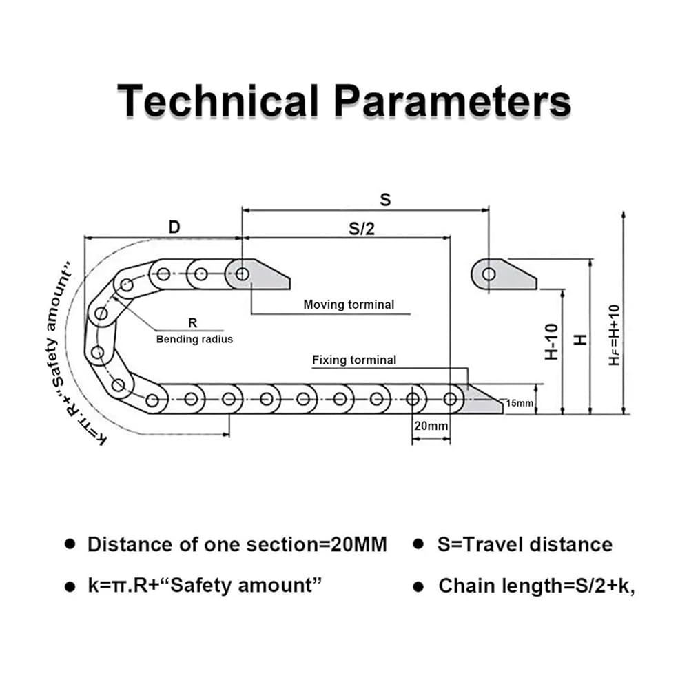 Temperature Black Nylon Cable Chain 10mm x 15mm(Inner H x Inner W) End Connectors Wire Carrier Drag Chain 1M