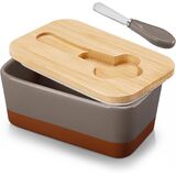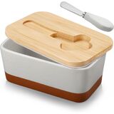 Elegant Ceramic Design, Natural Bamboo Accent: Elevate your countertop with a butter dish that combines timeless ceramic elegance with warm, sustainable bamboo. The beautiful contrast of materials adds a touch of rustic charm to any dining setting, making butter container both a functional piece and a stylish decor item.