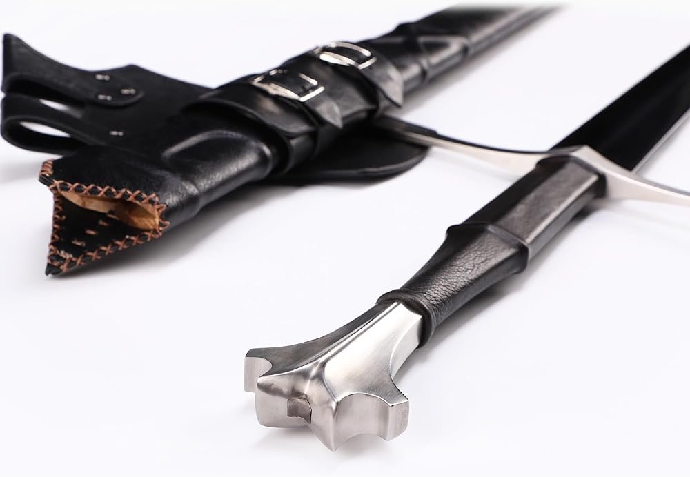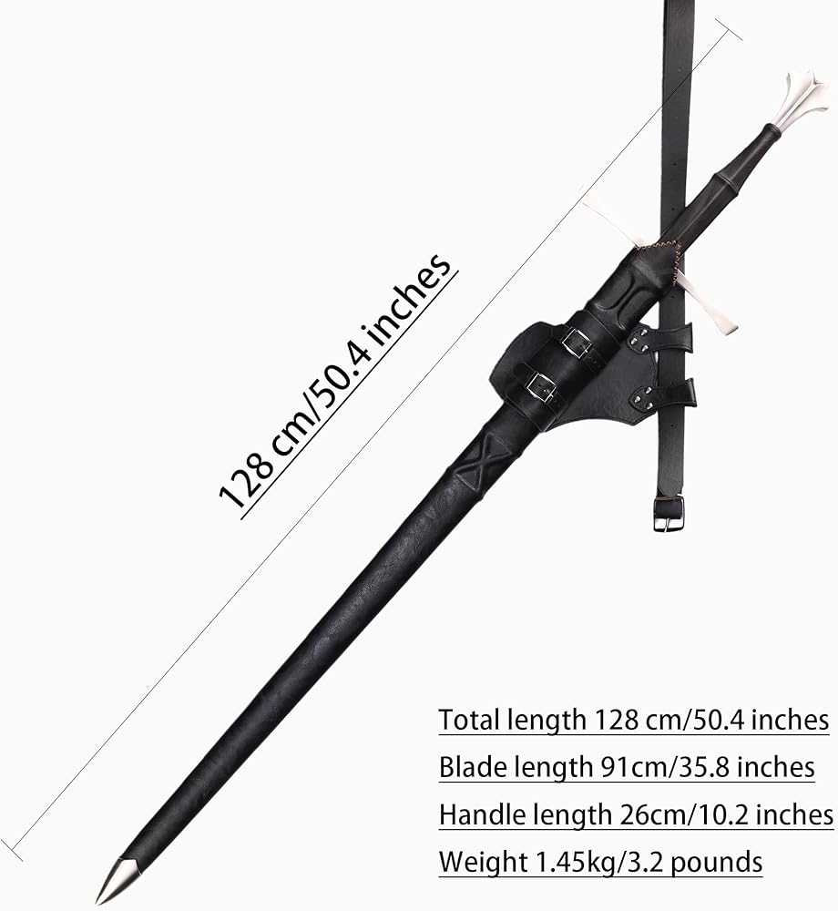 Manganese steel blackened sharp blade: The 35.8-inch sword body is hand forged from high toughness manganese steel, which is professionally blackened to form a rust proof protective layer. The sharpness of the blade reaches a practical level, balancing historical accuracy and durability.