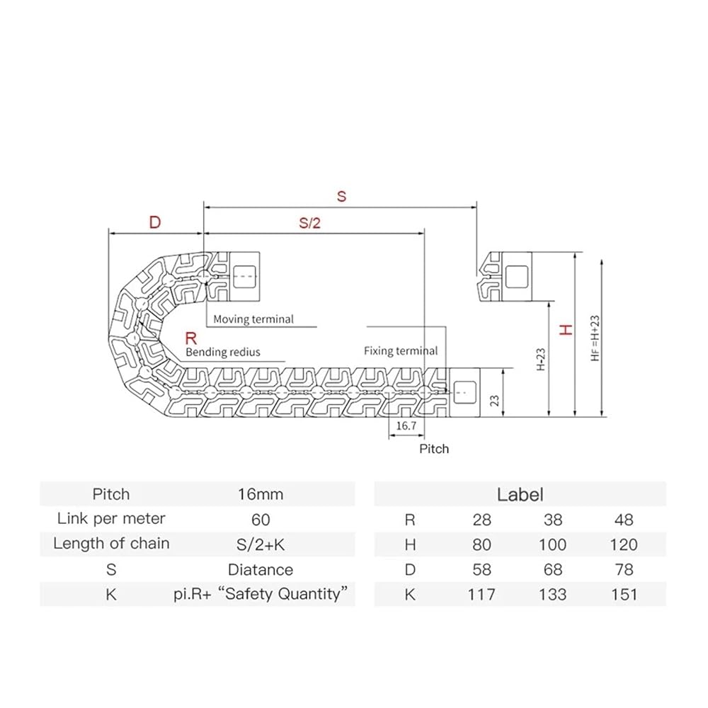 Bending Radius(R): 28 / 38 / 48