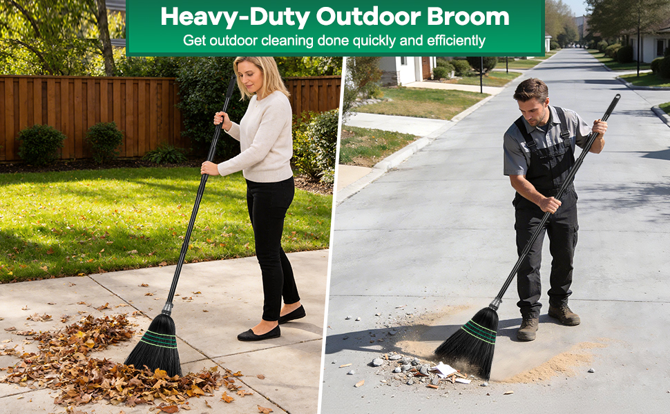 🧹 Professional Outdoor Broom -Your heavy duty brooms for rugged tasks ! This industrial broom sweeps gardens, garages, roads, commercial,industrial and more with stiff bristle broom power. Perfect as an outside broom or broom for outdoor sweeping.