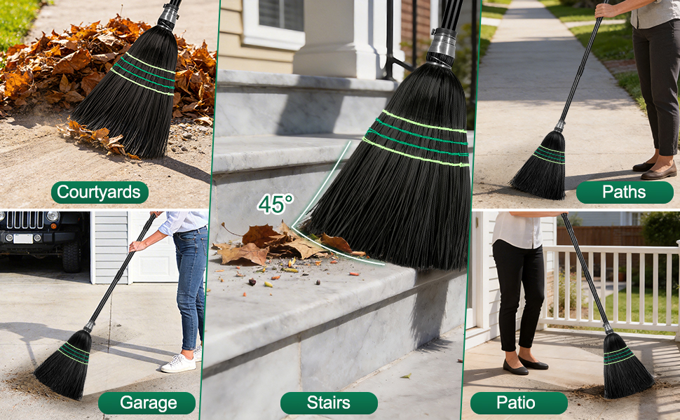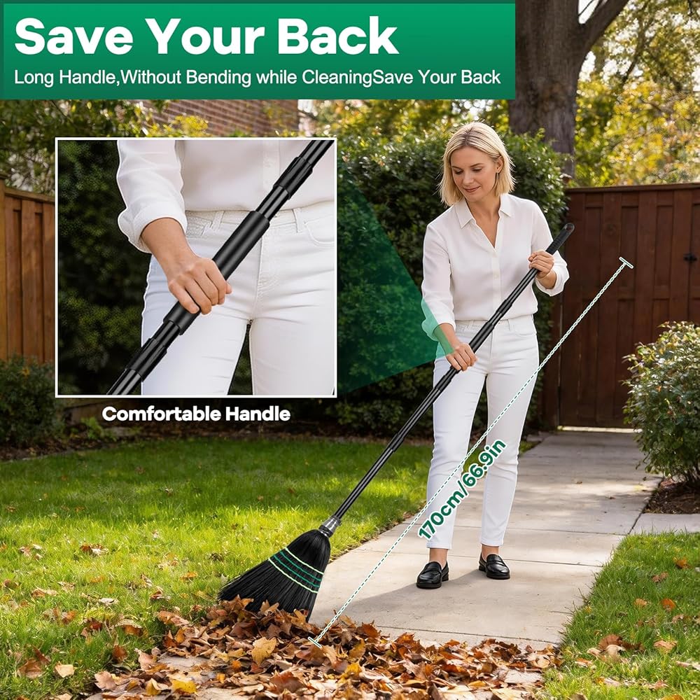 🌿 Versatile Outdoor Brooms -Outside broom for sweeping patio, garden,yard or porch! Use as a yard broom or patio broom outdoor to tackle leaves and dust. A reliable broom outdoor heavy duty.