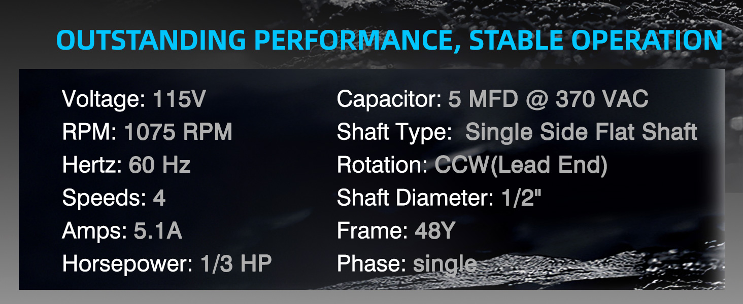 【Powerful & Efficient Performance】Equipped with a 1/3 HP blower motor, operating at 115V and 1075 RPM with 4 speeds, this blower motor delivers steady airflow for optimal furnace heating and energy efficiency.
